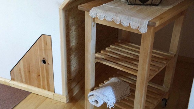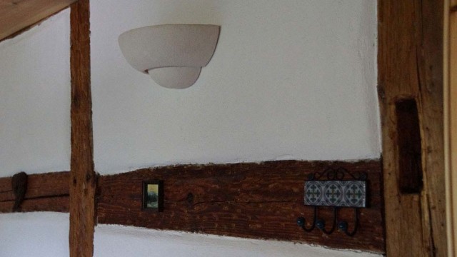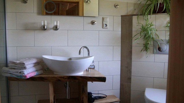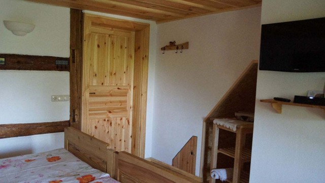 Der Umbau 2016 hat das Zimmer zu etwas ganz Besonderem werden lassen. Altes Fachwerk wurde freigelegt, Boden und Decke sind ganz traditionell und doch zeitgemäss mit Holz gestaltet und das Bad überrascht mit modernen Elementen, einer offenen Dusche sowie einem individuell angefertigten Waschtisch aus Holz. Fühlen Sie sich wohl in ländlichem, gemütlichen Ambiente voller Komfort.