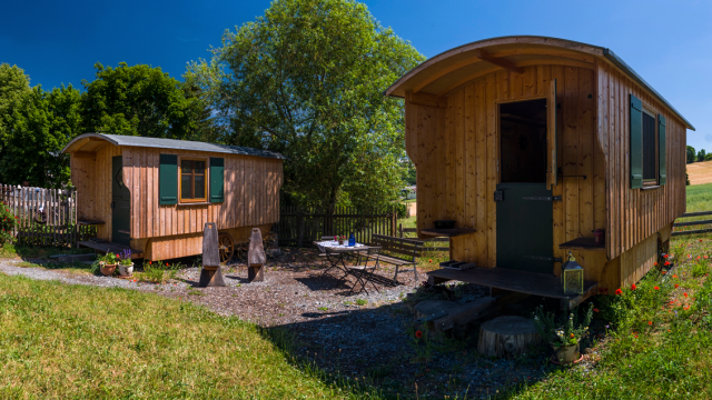 Beide Schäferwagen können je nach Belegungssituation einzeln oder zusammen gebucht werden oder als Aufbettungsmöglichkeit zu einer Ferienwohnung für mindestens 2 Nächte.